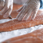 Die Veredelung beginnt sofort nach Erhalt der frischen Rohware, um sicherzustellen, dass der Lachs in seiner optimalen Frische geräuchert wird. Dabei setzen wir ausschließlich auf Lachs aus norwegischer Aufzucht, der für seine hervorragende Qualität bekannt ist. Dank dieses Prozesses bleibt unser geräucherter Lachs besonders lange haltbar und kann problemlos eingefroren werden, ohne an Geschmack oder Konsistenz zu verlieren – etwas, das bei bereits gefrorener Rohware nicht möglich ist.