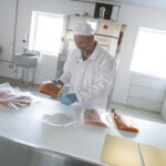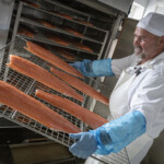 Foredlingen begynner umiddelbart etter mottak av den ferske råvaren for å sikre at laksen røykes i sin optimale ferskhet. Vi bruker kun laks fra norsk oppdrett, kjent for sin fremragende kvalitet. Takket være denne prosessen holder vår røykelaks seg spesielt godt og kan fryses ned uten å miste smak eller konsistens – noe som ikke er mulig med laks som allerede har vært frossen.