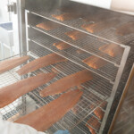 Der Räucherprozess kombiniert Tradition und Moderne. Während unser Rauch- und Trocknungsverfahren auf die neuesten Technologien zurückgreift, bleibt die Basis unserer Räucherkunst der klassische Einsatz von Buchenspänen und Wacholder. Dabei verzichten wir vollständig auf Zusatzstoffe, um ein unverfälschtes Aroma zu garantieren.